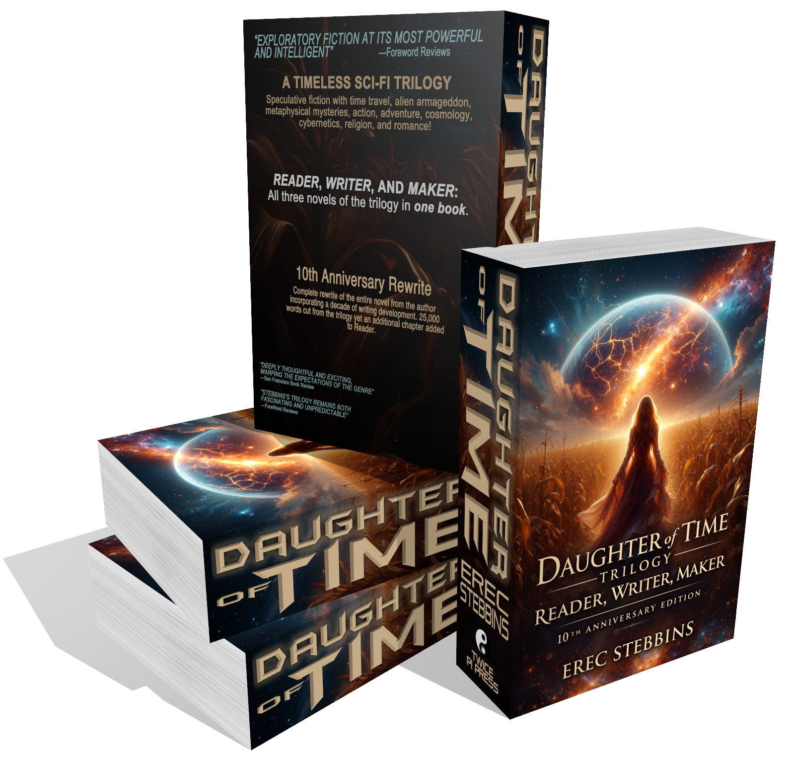 It has now been ten years since the original publication of my Daughter of Time trilogy. Of all my writings, this series is the most important to me in nearly every aspect of a novel that might matter: plot, ideas, themes, characters, and writing. Unlike my thrillers, which were written strongly to match what I understood of the expectations of the genre, I had allowed myself a lot more creative license with Reader, Writer, and Maker (especially Maker).
